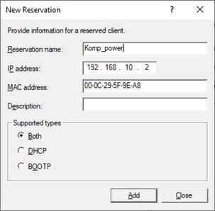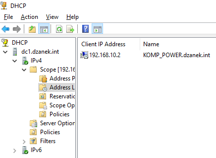Przydział adresu IP na podstawie MAC adresu
