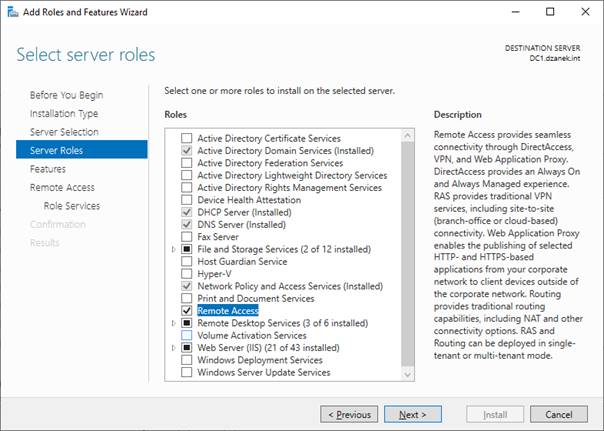 Instalujemy usługę Remote Access