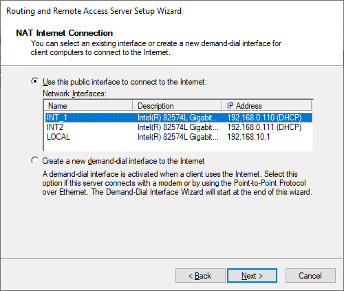 Wybieramy interface z dostępem do Internetu.