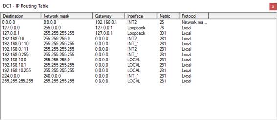 W gałęzi General sprawdzamy tablicę routingu interfejsu lokalnego.