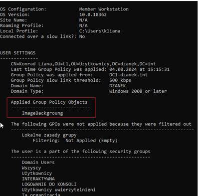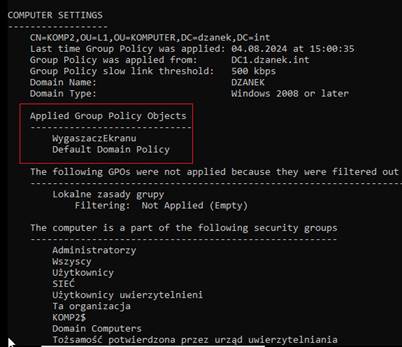 Sprawdzamy na stacji roboczej jakie GPO dotyczą komputera
